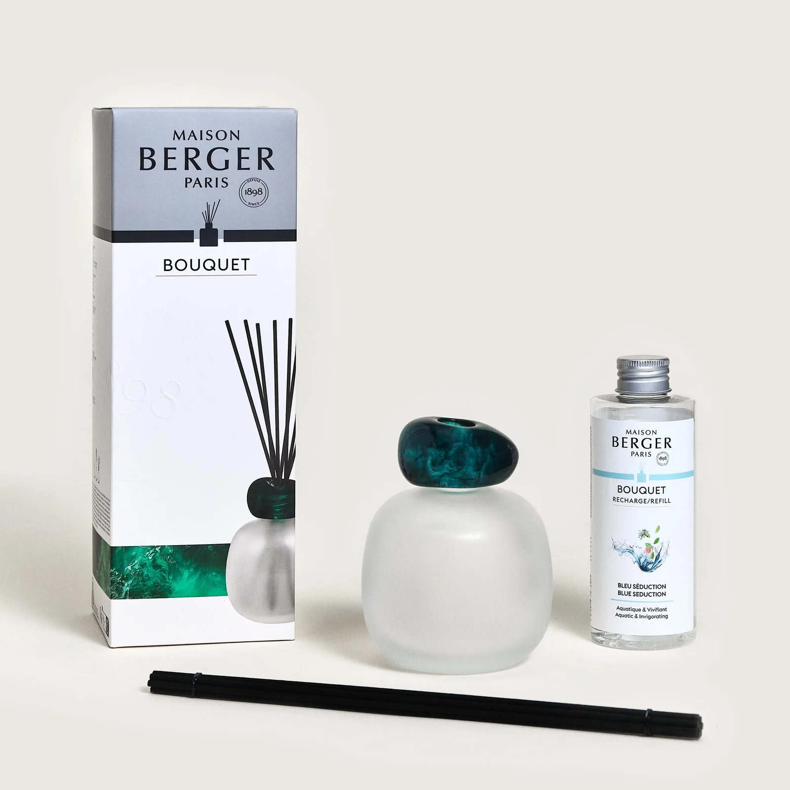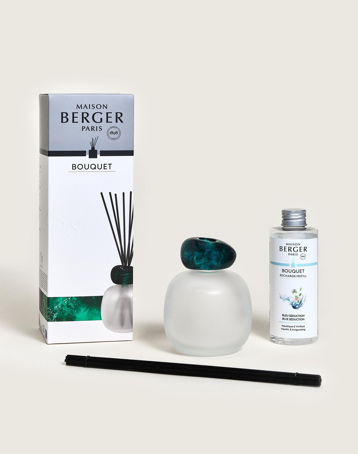 • Includes: Frosted Mineral Scented Bouquet, Blue Seduction Scented Bouquet Refill 180ml, 6 black sticks