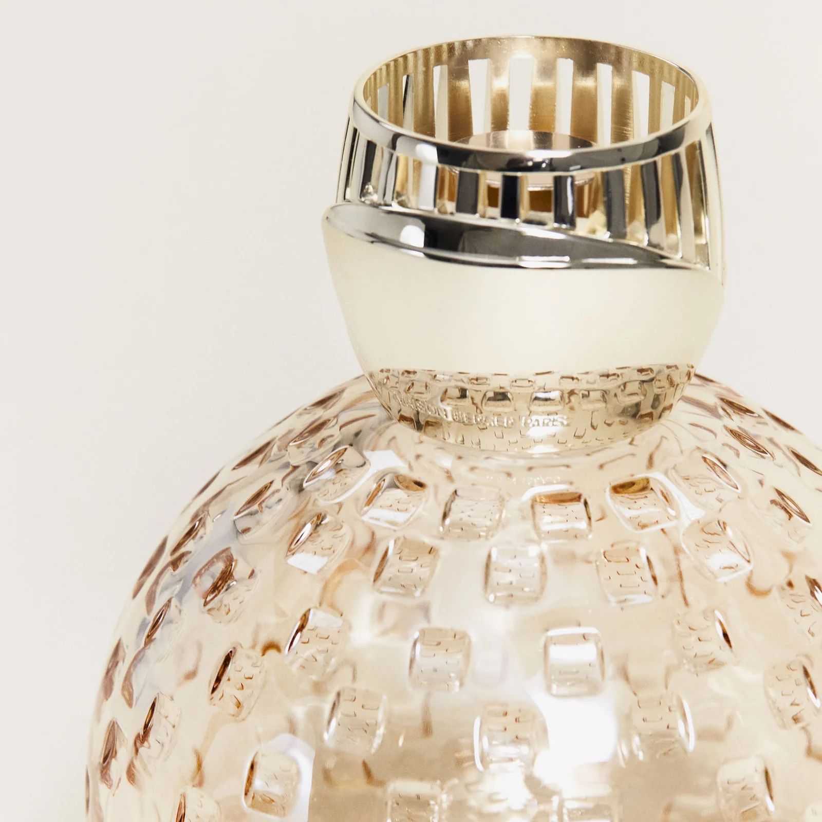 The Crystal Globe Beige Lamp Berger Art Edition is a timeless yet modern statement piece that showcases Maison Berger’s perfuming expertise alongside high-quality crystal craftsmanship. Its luminous beige tones and hand-engraved square detailing create depth and texture, turning this lamp into a distinctive collectible as well as a functional home fragrance diffuser.