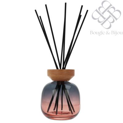 The Exquisite Sparkle Wood Scented Bouquet pairs a gradient grey and red glass body with a pale wooden ring and copper metal plaque, creating a striking decorative accent with a warm and elegant finish.
