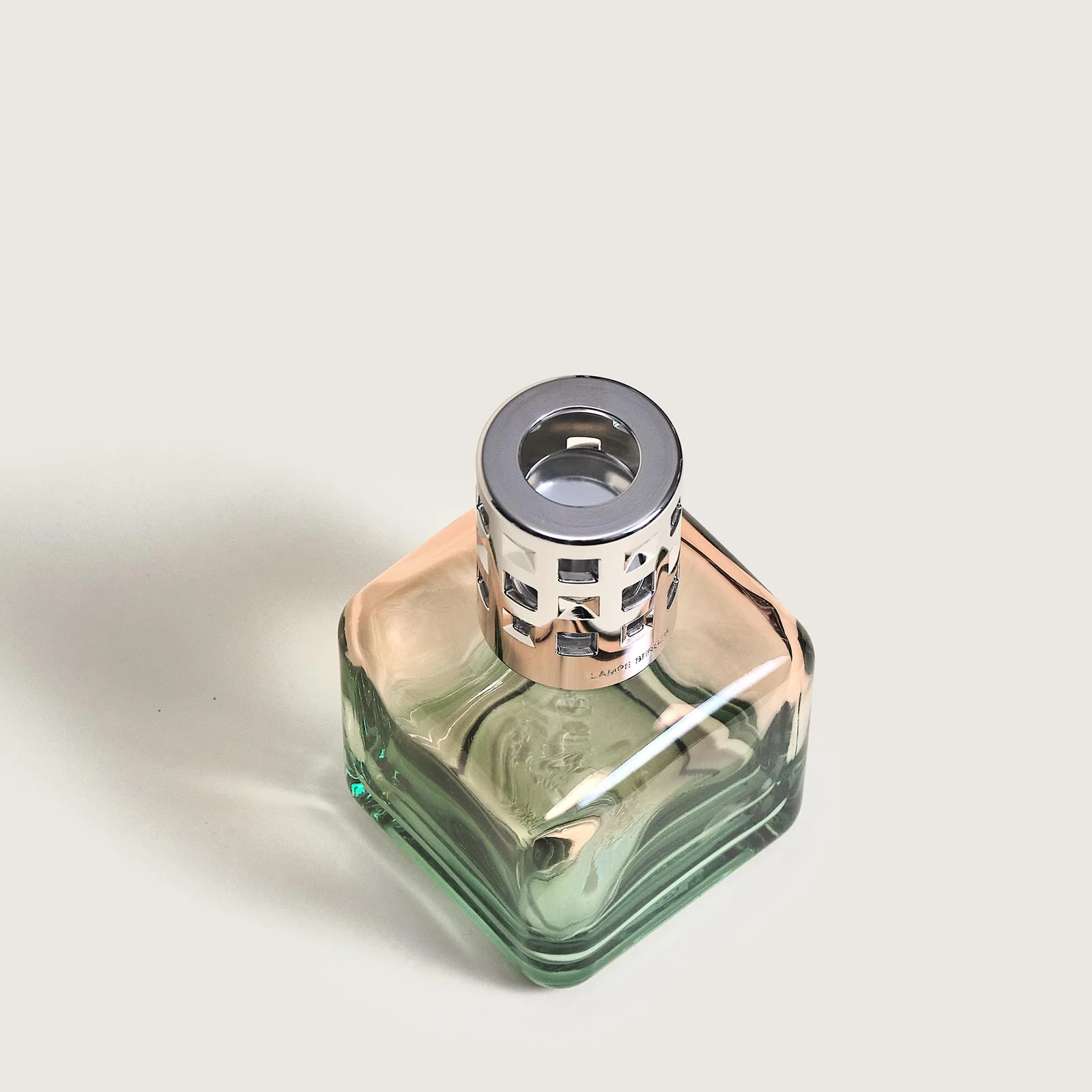 The Peach/Green Glaçon Lamp Berger Gift Pack combines a bold cubic silhouette with a soft peach and green tie-dye finish, creating a contemporary decorative accent for the home.