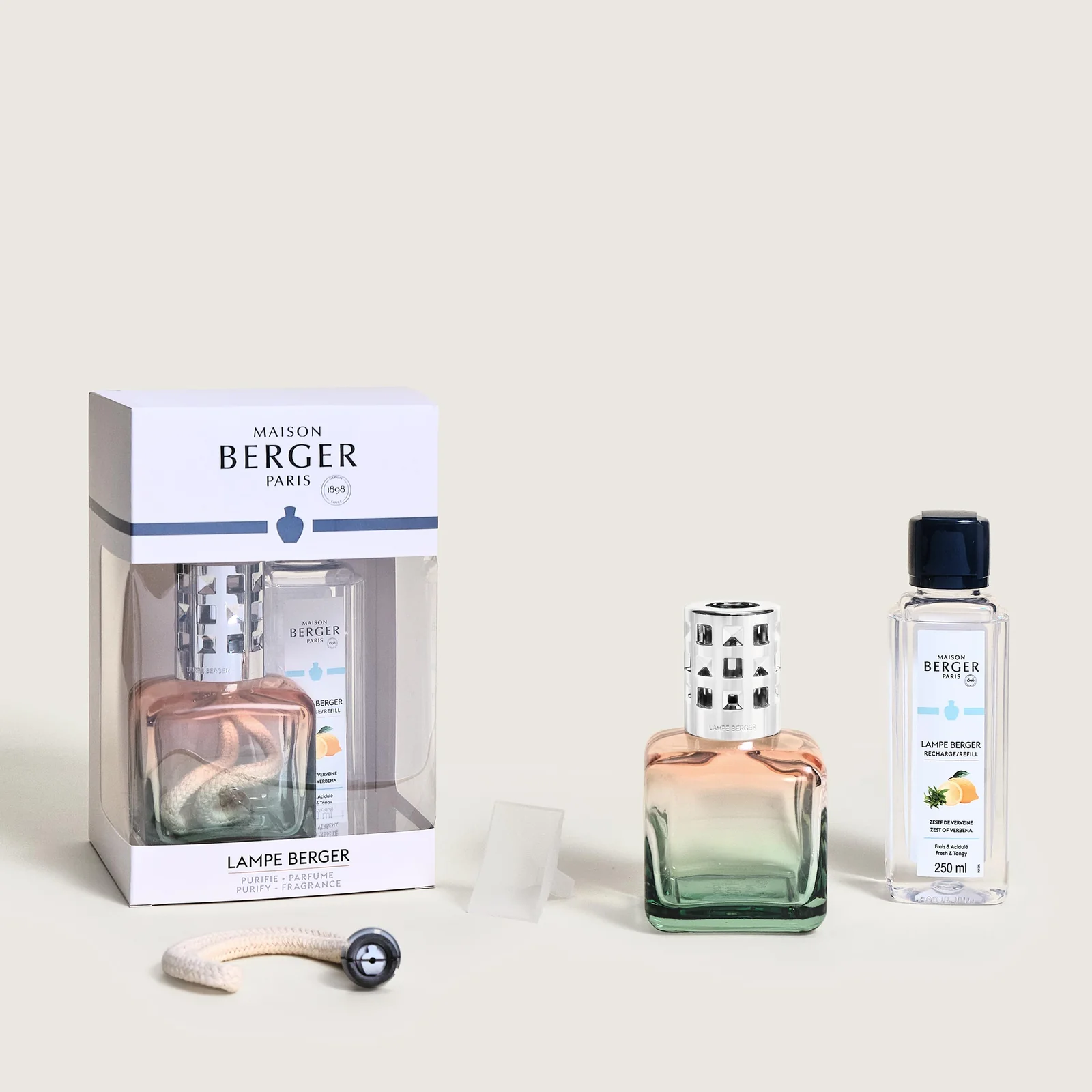 • Includes: Glaçon lamp, 250ml Zest of Verbena refill, Air Pur 3P burner, shiny silver stopper and transparent funnel